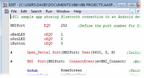 HMIPort EQU 252 ;Define the port number for SimpleHMI. The Bluetooth adaptor is on port 252