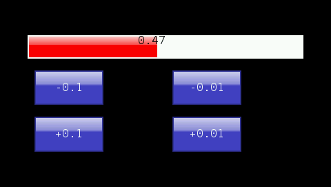 Example. The following program will produce the result shown below on an HMI430. The bar is drawn with a red foreground and white background. The buttons can be used to change the bar length: