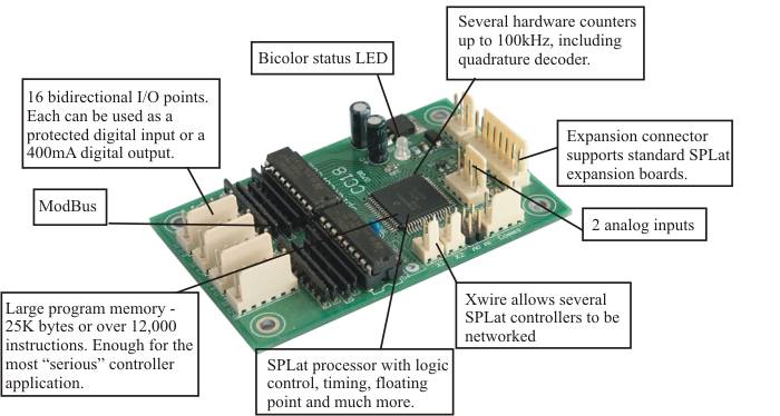 Congratulations on your choice of the SPLat CC18 controller. SPLat gives you the ability to implement a sophisticated control system in your product easily and inexpensively, and will give you an edge that will have your competitors wondering whatever hit them!