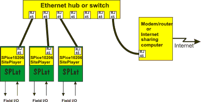 The SPice10206 and SitePlayer combination make it possible for you to create SPLat applications that are accessible from anywhere on the world wide web using just a web browser such as Internet Explorer or Mozilla. A very large percentage of business and industrial premises these days have a local area network (LAN) based on Ethernet and CAT5 cabling, and usually the LAN is connected to the Internet via a permanent broadband connection. That means there is a very good chance that the required communications infrastructure is in place.