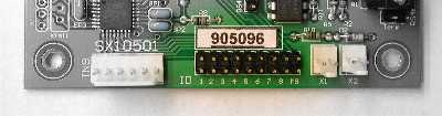The board has a field of 9 jumpers designated “ID” labelled 1-8 and MB. Jumper MB is reserved for future purposes, leaving 8 for addressing.Eight jumpers give 256 possible bus addresses, out of which addresses 254 and 255 are invalid. The bus address is the numeric address used by Xwire to select the board. Every board connected to an Xwire system (be it using the Xwire connections or RS485), must have a unique address. The jumpers are in a binary format meaning each jumper has a unique value. Any address value from 0 to 255 is possible by adding links to the jumper connector. Every link added adds that jumpers value to the final total.