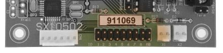 The board has a field of 9 jumpers designated “ID” labelled 1-8 and MB. Jumper MB is reserved for future purposes, leaving 8 for addressing. The address is the numeric address used by Xwire to select a particular board on the Xwire bus. Every board connected to an Xwire system (be it using the Xwire connections or RS485), must have a unique address. The jumpers are in a binary format meaning each jumper has a unique value. Any address value from 0 to 253 is possible by adding links to the jumper connector. Every link added adds that jumper’s value to the final total.