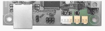 The 3-pin screw terminal block is for RS485 connection. The A and B terminals should go to A and B on all other devices on the RS485 system. The G terminal should go to system ground. Just next to the terminals (to the left above) is a jumper marked “Term”. Installing a jumper in that position provides an RS485 line terminator.