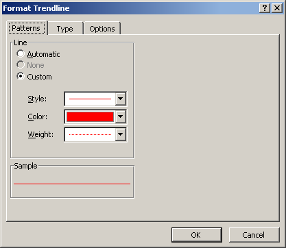 - In the Chart menu select Add Trendline (this may vary with different versions of Excel. I still happily use Excel 97).