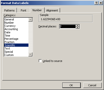 - Can you see the fancy equation? That’s what we are after. If you right-click the equation you can change the number formatting via Format Data labels