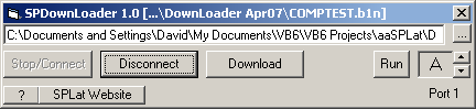 SPDownLoad is a utility that allows someone with minimal training to download a translated SPLat program to a controller. It is designed to allow OEM users of SPLat (i.e. someone embedding a SPLat in their own product) to distribute SPLatWare updates to their customers.