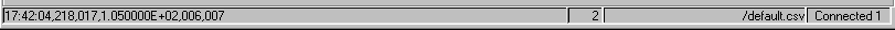 SLCom status. This shows the state of the connection to the SPLat board. SPLogger automatically scans COM1 through COM4 looking for a SPLat board. You can click on this to isolate SPLogger from the board, and free the serial port. Click it again to re-connect. Isolating is convenient when you are alternating with SPLat/PC to debug a program in the board.