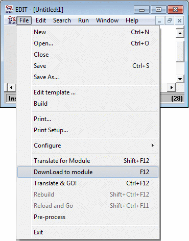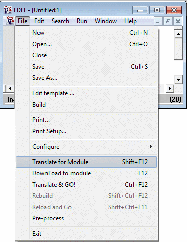 Now we are ready to transfer the translated program (all 15 bytes of it!) to the board. Use the menu selection shown: