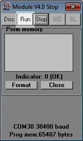 Click the Stop button on the Module window to stop the program and give control of the board back to SPLat/PC.