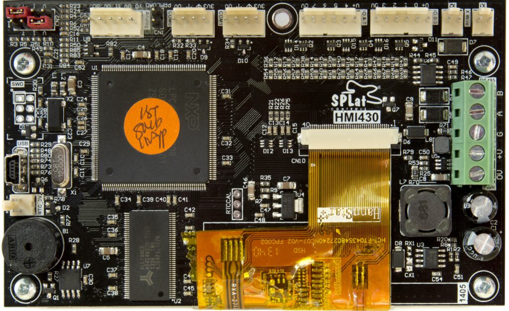 Melbourne, Australia – Oct. 28, 2014 – SPLat Controls announces the HMI430 board-level programmable logic controller (PLC) with an integrated 4.3-inch colour touchscreen, available at nearly half the cost of previous products with similar functionality. With onboard, ruggedized digital I/O, analog I/O, and the SPLat MultiTrack™ built-in multitasking operating system, the HMI430 delivers professional-quality control that is affordable and easy to program, minimizing development time.